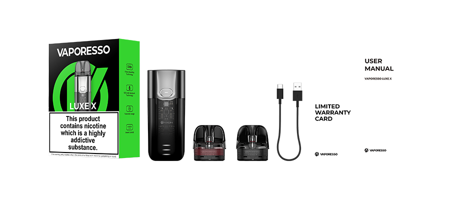 • 1 x VAPORESSO LUXE X 0.8Ω MESH POD(5ml)