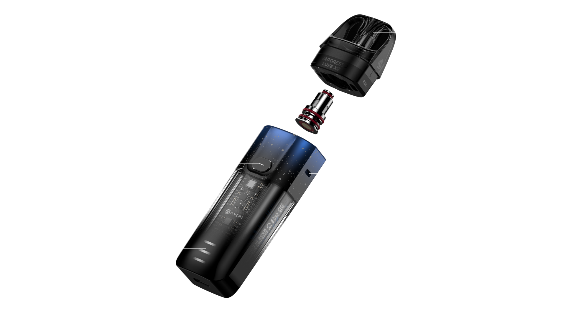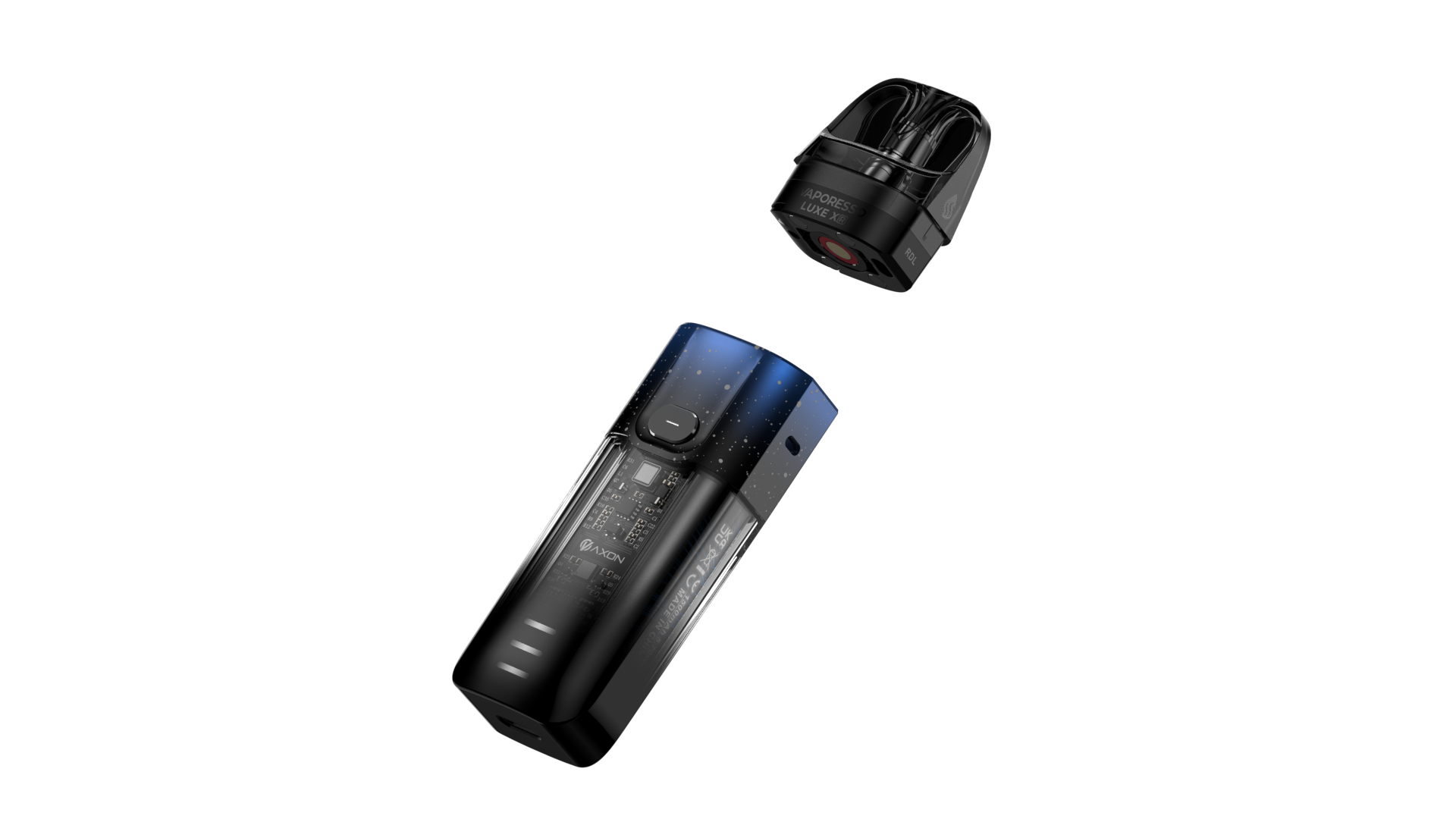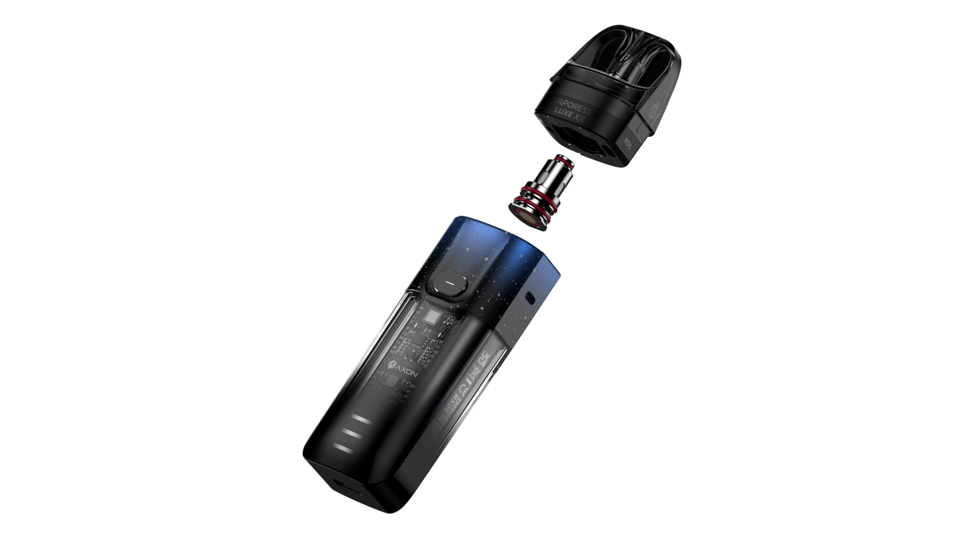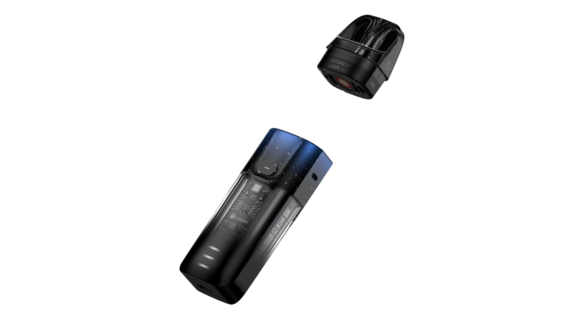 It's the first 40w pod system with non-replaceable coils. The transparent body emerges a futuristic style and sense of technology. Supported by the COREX technology and our AXON CHIP, you can experience a surprisingly boosted flavor and bigger clouds from such a small pod.The SSS Leak-resistant Technology with built in coil can ensure a more mess free experience.